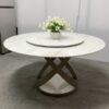 - Mặt bàn tròn bằng đá Ceramic: Bề mặt sáng bóng, đường vân mây tự nhiên sang trọng, dễ dàng vệ sinh và giữ độ mới lâu dài.