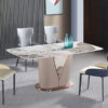 - Mặt bàn đá ceramic nhiều màu: Bề mặt đá chống trầy xước, chịu nhiệt tốt, dễ dàng vệ sinh. Họa tiết đá tự nhiên đa sắc giúp bàn trở thành điểm nhấn nổi bật trong không gian nội thất.