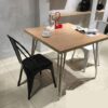Mặt bàn được làm từ chất liệu gỗ cao cấp có độ bền bỉ chắc chắc tốt, độ dày mặt bàn vừa phải, kết hợp với 4 chân bàn làm từ chất liệu kim loại không gỉ, sáng bóng, vô cũng vững chắc.