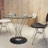 Ngoài các mẫu bàn ăn hình chữ nhật, hình vuông thì bàn ăn hình tròn cũng là một sự lựa chọn được nhiều người yêu thích. Mẫu bàn ăn tròn CYCLONE-08 có thiết kế hiện đại với chân thép là những thanh dài đang xen với nhau tạo nên một cấu trúc xoáy nước vô cùng vững chãi và đẹp mắt. Phần đế trụ được làm bằng chất liệu gang đúc cứng cáp giúp chiếc bàn chịu lực tốt, đứng vững vàng không dễ bị ngã đỗ.