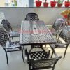 Sản phẩm có hai kích thước lựa chọn: 146 x 80 x 75 cm và 150 x 90 x 75 cm, đáp ứng nhu cầu sử dụng đa dạng. Bàn được làm từ nhôm đúc sơn tĩnh điện, chống gỉ sét, chịu được nắng mưa và dễ vệ sinh.