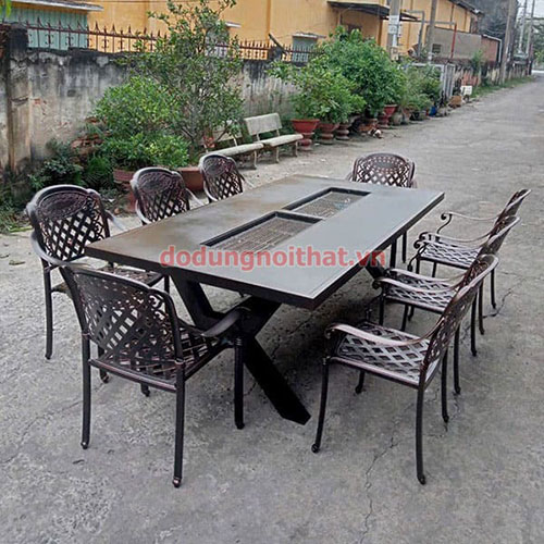 Sản phẩm có hai màu sang trọng – màu sâm banh và màu đồng, phù hợp với nhiều phong cách sân vườn hoặc không gian ẩm thực ngoài trời.
