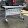 Bàn văn phòng gập DB1A là lựa chọn lý tưởng cho những không gian làm việc cần tính linh hoạt và gọn gàng. Mặt bàn làm từ gỗ ép công nghiệp chất lượng cao, bền chắc và dễ vệ sinh, mang màu trắng tinh tế, giúp tạo cảm giác sáng sủa và hiện đại cho văn phòng. Chân bàn bằng sắt sơn tĩnh điện vững chãi, chống gỉ và chịu lực tốt, đảm bảo sự ổn định khi sử dụng.