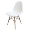 Ghế ăn DSW1-PC sở hữu kiểu dáng gọn gàng, phần lưng tựa liền khối bo cong nhẹ, mặt ghế trơn láng và chân gỗ đan chéo vững chắc. Mẫu ghế này mang đậm tinh thần hiện đại, thanh lịch, rất thích hợp dùng trong không gian ăn uống, quán cà phê hoặc phòng họp nhỏ.