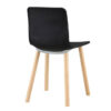 Tựa lưng có độ cao vừa phải, được bo tròn mềm mại, kết hợp với bốn chân ghế bằng gỗ tự nhiên chắc chắn, màu sáng tạo sự tương phản hài hòa với phần nhựa đen của ghế. Kết cấu chân gỗ được liên kết với khung kim loại bên trong, tăng độ ổn định và đảm bảo an toàn khi sử dụng.