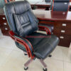 Phần tay vịn bằng gỗ tự nhiên bọc da tạo điểm nhấn tinh tế, mang lại cảm giác chắc chắn và thoải mái khi sử dụng. Chân sao gỗ vững chãi giúp ghế ổn định và tăng thêm vẻ đẹp sang trọng cho văn phòng.