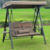 Khung ghế được chế tác từ hợp kim thép sơn tĩnh điện công nghiệp, bền chắc, chống gỉ sét và chịu được tác động của môi trường ngoài trời. Mái che làm từ vải bạt dày dặn vừa có tác dụng che nắng, che mưa nhẹ, vừa tạo cảm giác mát mẻ, riêng tư. Bên dưới, ghế được trang bị đệm ngồi êm ái, tăng thêm sự dễ chịu trong từng khoảnh khắc nghỉ ngơi.